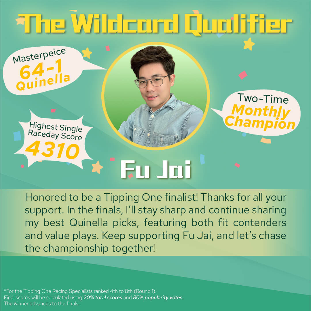 Following the "Vote for My Favourite Tipping One Racing Specialist” held in mid-December, Fu Jai has been named the final qualifier. Here is a message from him to all supporters: